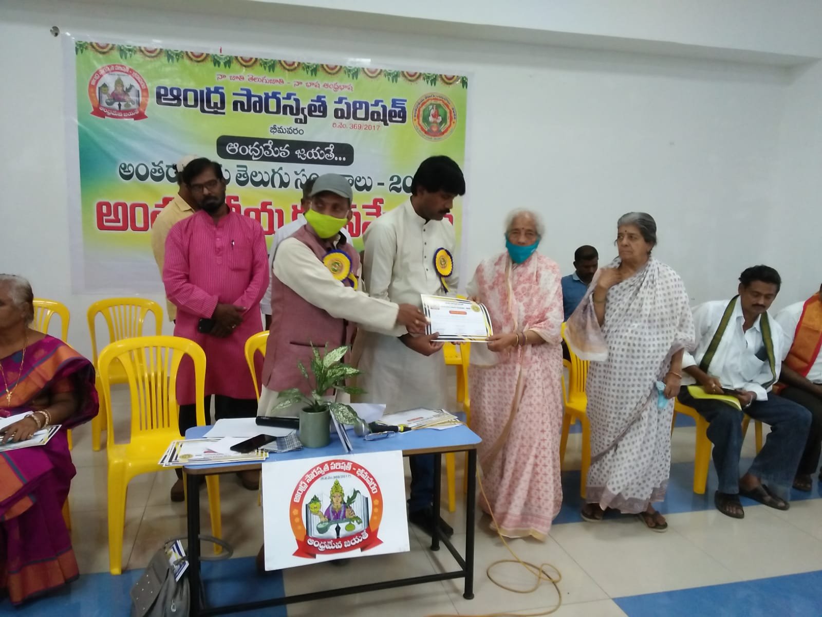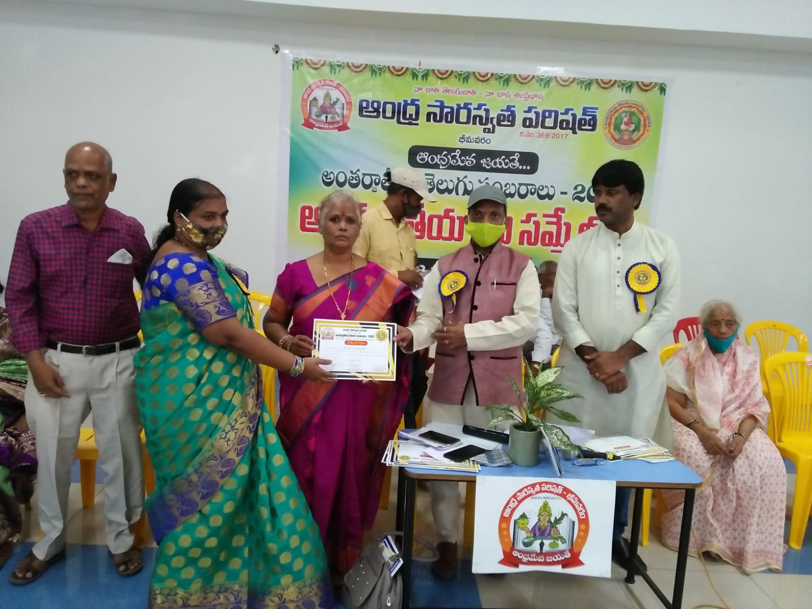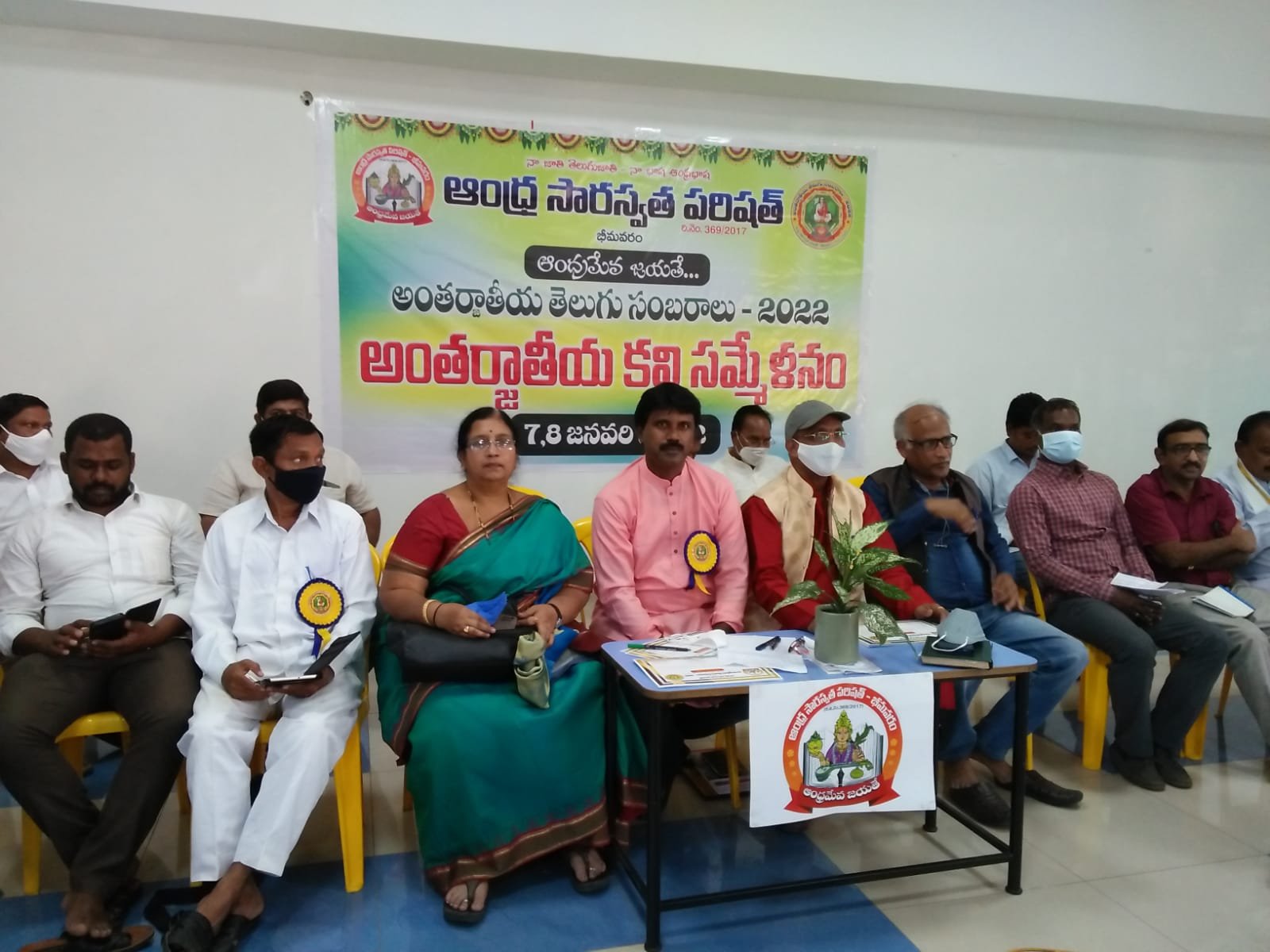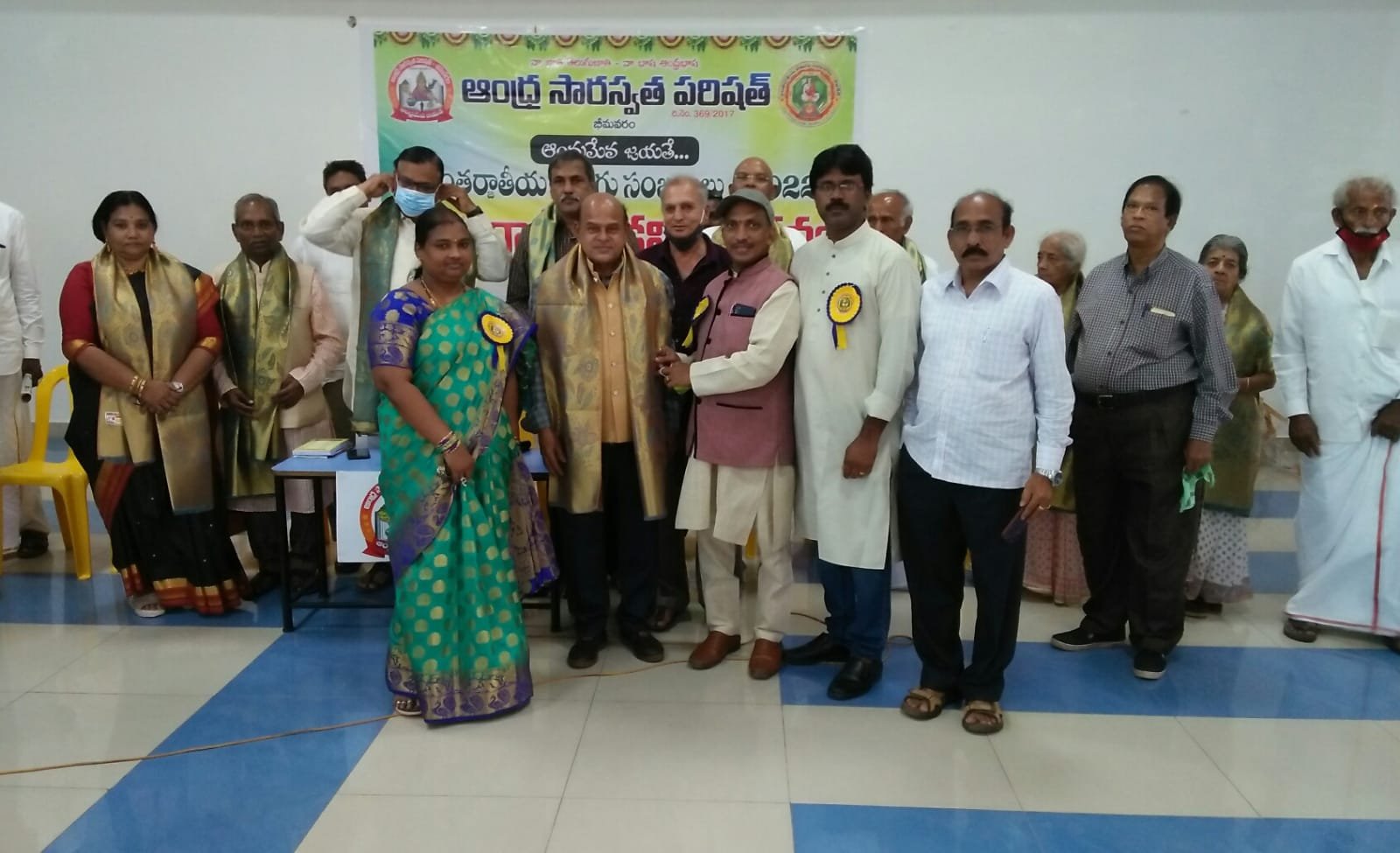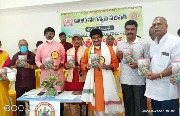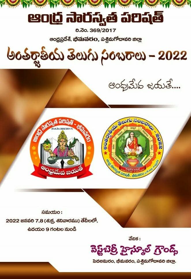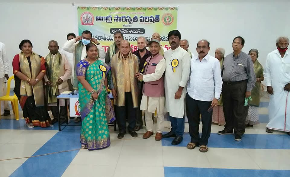 After the bifurcation of the united Andhra Pradesh, the Andhra Saraswata Parishad organization in Hyderabad was renamed Telangana Saraswata Parishad. With the noble intention of continuing the glory of the Telugu language in the new Andhra state, in 2017, under my leadership as President, along with Dr. Kadimilla Varaprasad and Sri Medikonda Srinivas as Vice Presidents, Sri Chakravadhanula Reddappa Daveji as Secretary, Sri Rayaprolu Bhagavan as Treasurer, and Sri Ponnapalli Rama Rao and Sri Manthena Ramakumar Raju as Joint Secretaries, we registered the organization in Bhimavaram and began conducting activities from a temporary office.